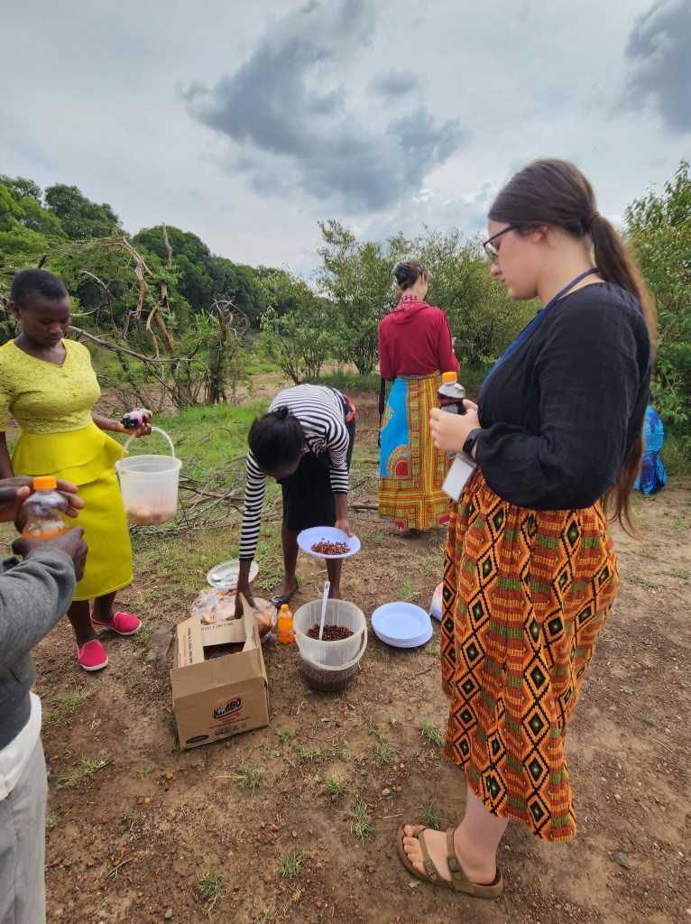 We stopped about an hour in and ate beans, bread, and boiled eggs, along with soda. We took a group photo and some other pictures that I will treasure forever. When we were getting ready to leave, everyone was so dead tired. We left and the roads were bumpy once again! Once we had driven about an hour the van slowed to a stop and we pulled off the road.