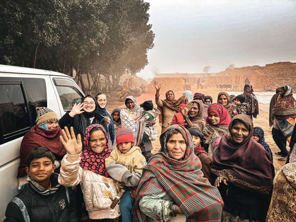 The day began with us meeting the other helpers at the storage hall. They loaded the big truck with all of the PCB gift items. When they were loading the flour, they created a line of people and created a chain. It ended in throwing the bags down the line and being covered in a coat of wheat flour! I also learned to say salaam to your peers, not salaamji. Ugh, another salaam issue! Hahaha!