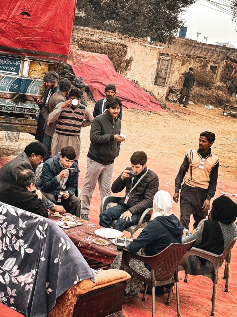 After distribution was finished, we played a little bit of frisbee. When dad said we needed to go ahead and leave, I was dreading getting into the van, because I knew I would have a stomach attack once my body knew I was done working. I sat down and then we heard they had prepared chai for us. We got out and starting walking to the table. I felt it coming on. I pulled on mom’s coat, and we starting heading back to the van. Joshua was ahead with the men. When he turned around, he saw me having another attack. (he has seen me have most of then because he’s with us most of the time, so he knew what was happening) He turned back around and told his dad, Bro. Shahzad, and my dad. So of course, the whole group turns around and comes to the van. Dad prayed for me, and they all joined in. They went and stood in front of the van waiting, and then it got worse. Dad came and was praying for me and Bro. Shahzad also came and laid hands on me and prayed in both Urdu and English. Once it got a little more bearable, they went and had chai.