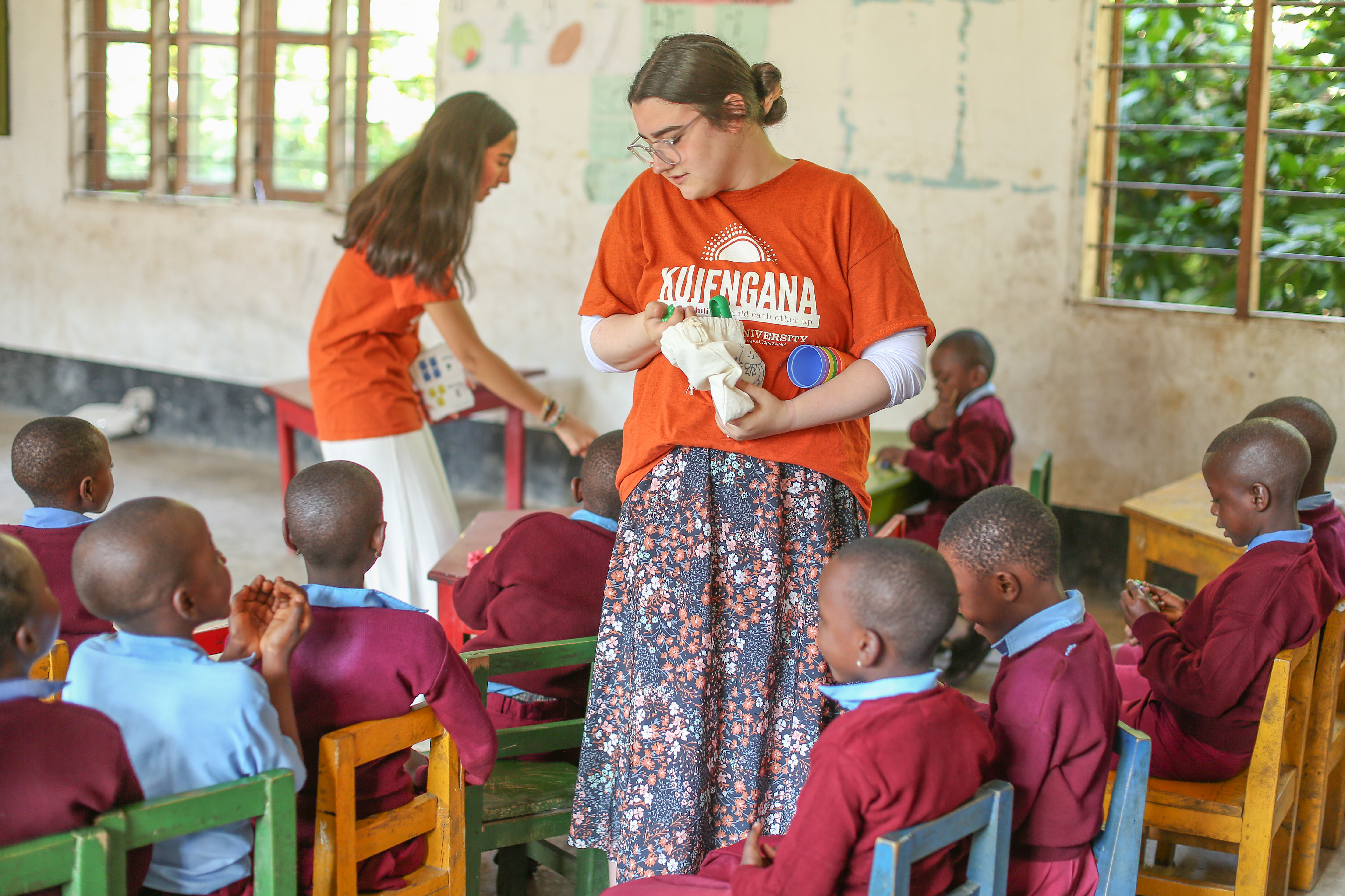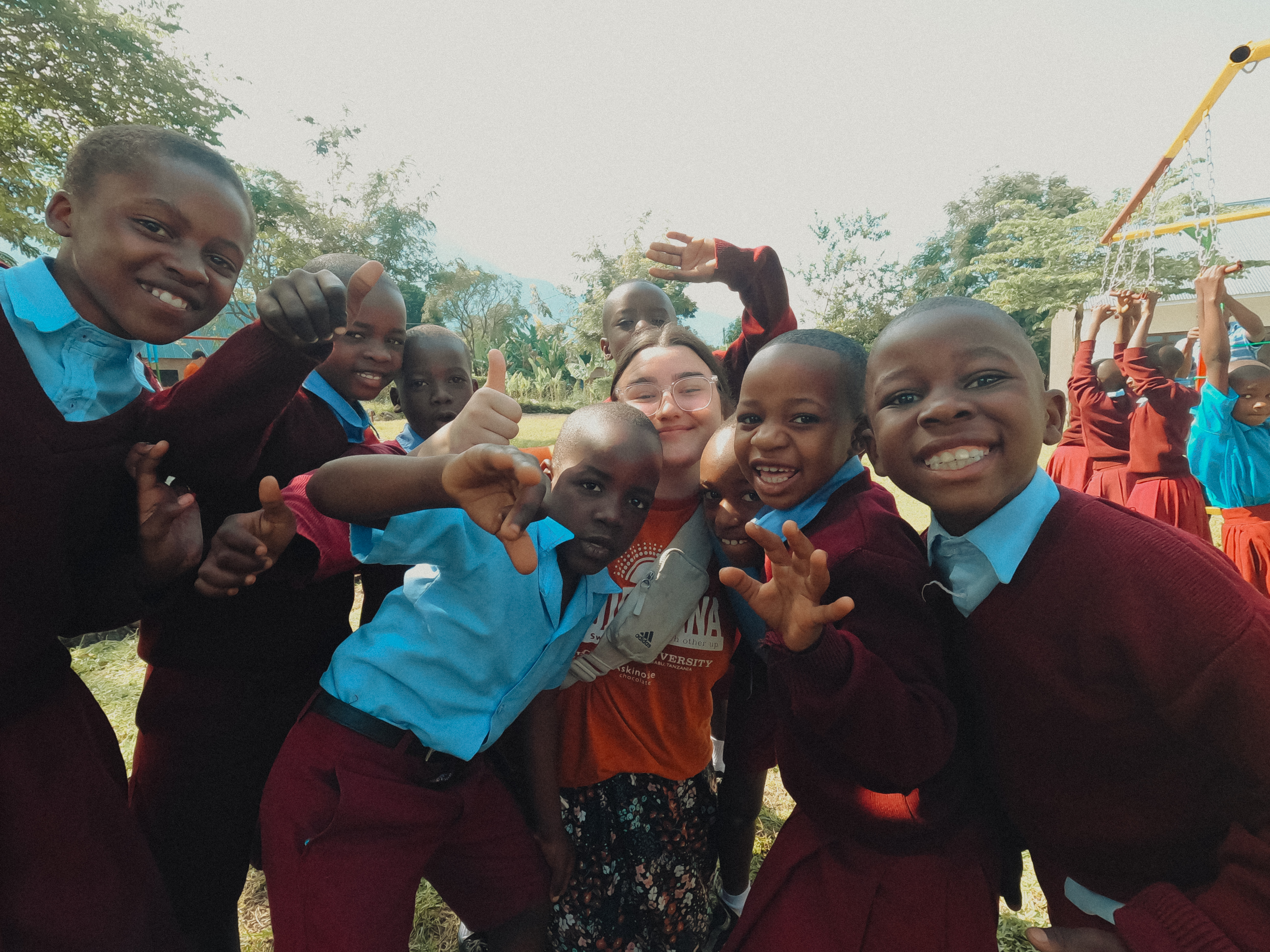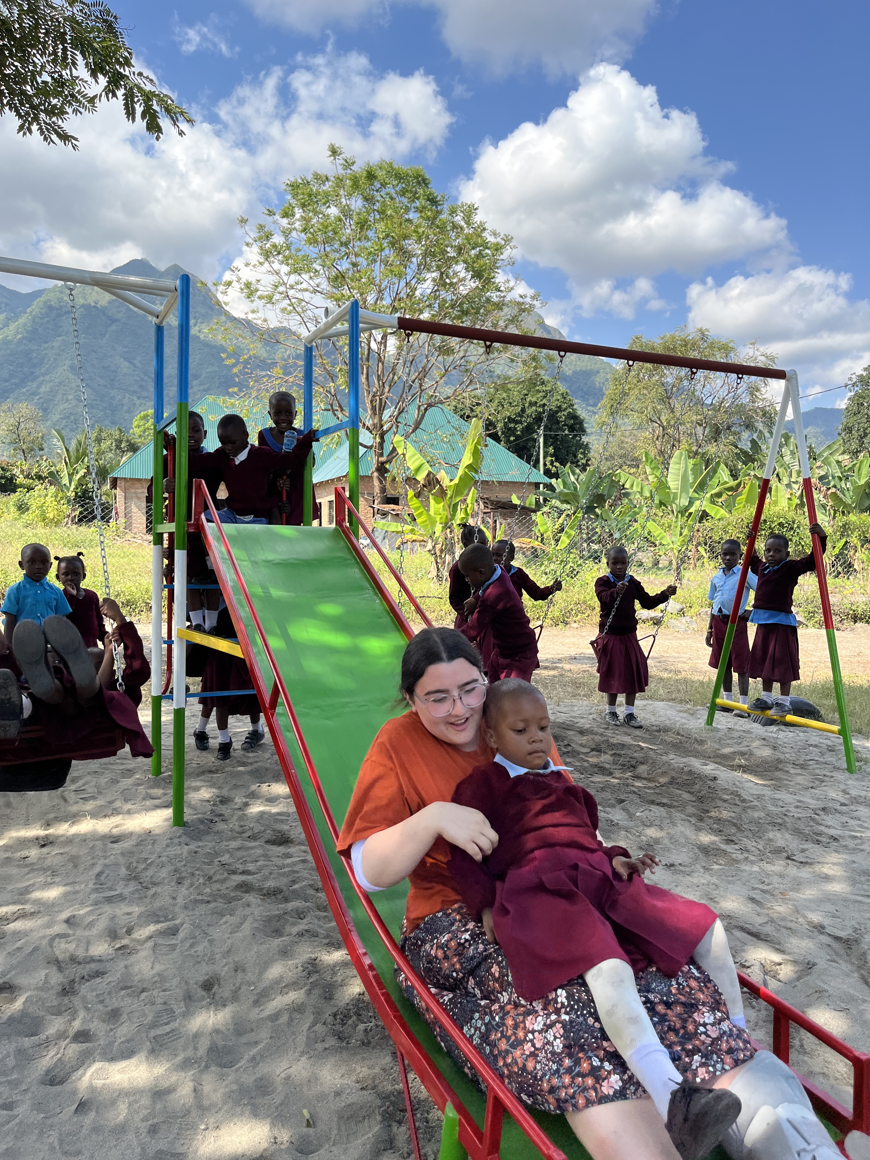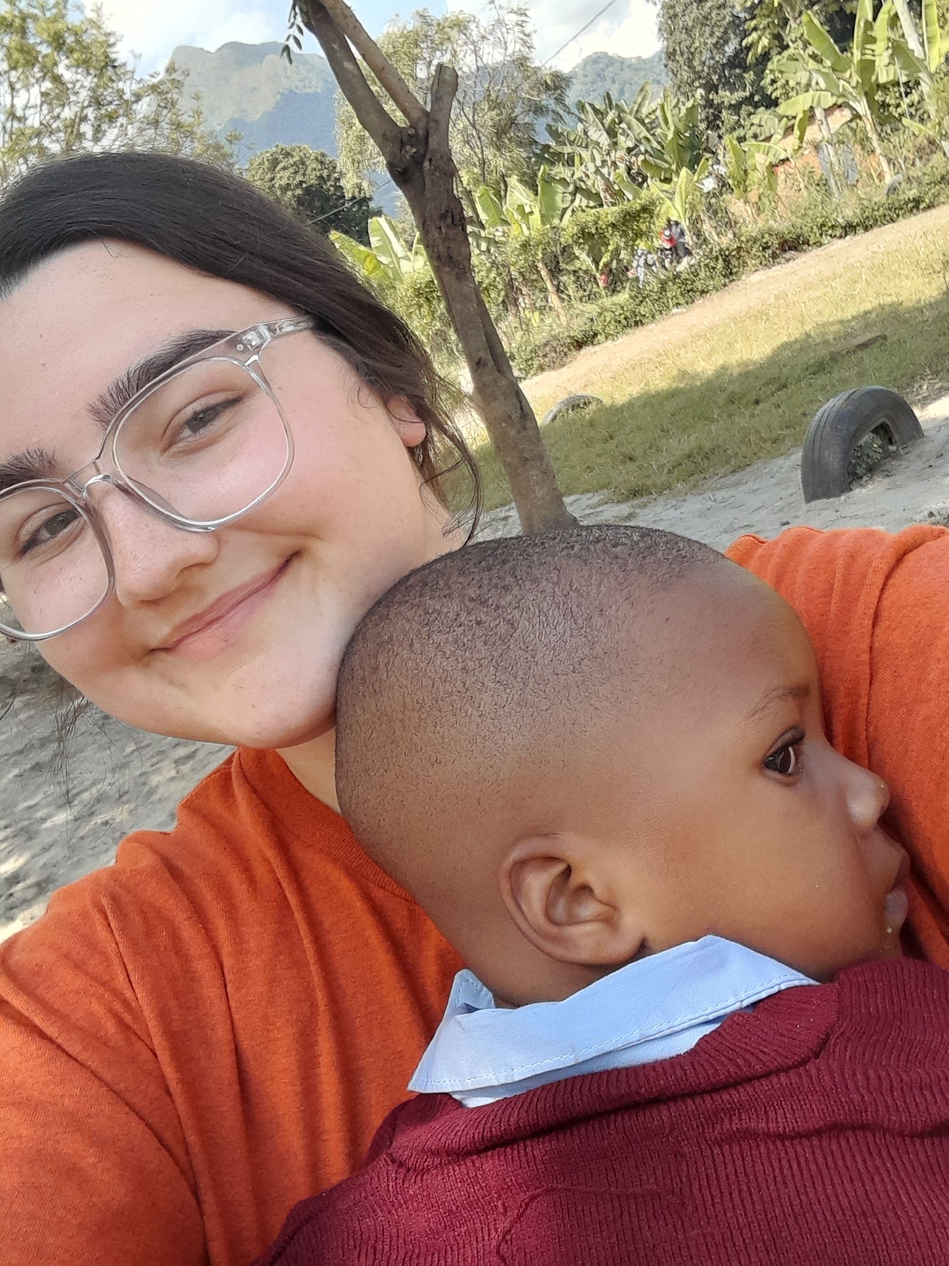 We all went outside to play together, and that’s when I noticed a little girl crying because she had fallen. I bent down, hugged her, and asked in Kiswahili if she wanted to play or sit with me. She nodded, so I held her in my lap. I rocked her gently, scratching her back and head, and eventually she fell asleep. The teachers began calling me “Mama Christina” and even asked if I wanted to take her back to America with me.